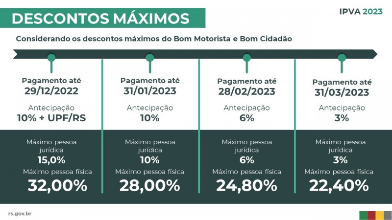 Além dos descontos pela antecipação, os proprietários também podem obter os benefícios de Bom Motorista (conforme multas de trânsito) e Bom Cidadão (conforme CPF colocado em notas fiscais), se tiverem direito, que acumularão, nesse caso, descontos máximos de 28% (janeiro), 24,8% (fevereiro) e 22,4% (março).