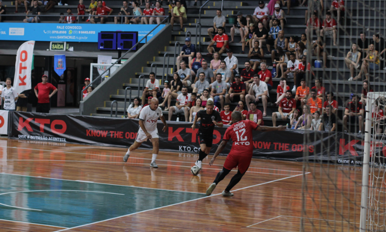 O duelo entre os amigos do Pedro Henrique e os amigos do Bolívar agitou o Ginásio Poliesportivo Arnão na manhã deste domingo, 11. Na ação, o público doou um quilo de alimento como ingresso, para auxiliar instituições e entidades de Santa Cruz do Sul. O evento contou com nomes conhecidos do futebol gaúcho, assim com influenciadores e humoristas.