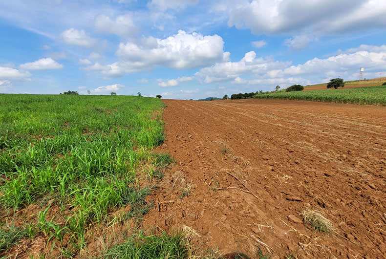 As primeiras adubações verdes que fizemos, de milheto, capim sudão e crotalária, vingaram perfeitamente, pois as chuvas vieram em quantidade boa. Não teve excesso de calor, houve a germinação e o desenvolvimento. Porém, agora o crescimento está parado também por falta de chuva. Mas com qualquer precipitação, a cultura voltará a se desenvolver novamente. Diferente da lavoura descampada, onde semeamos, havia umidade, começou a germinação, mas agora o sol forte queima os pés ainda sensíveis. Assim que der uma chuva iremos avaliar se vale a pena comprar novas sementes, passar o disco na lavoura e semear mais uma vez, pois tudo isso significa mais despesas que não estavam nos planos.