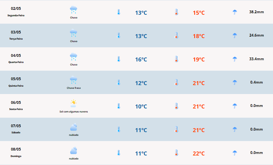 LEIA MAIS: Maio terá chuva acima da média e temperaturas moderadas