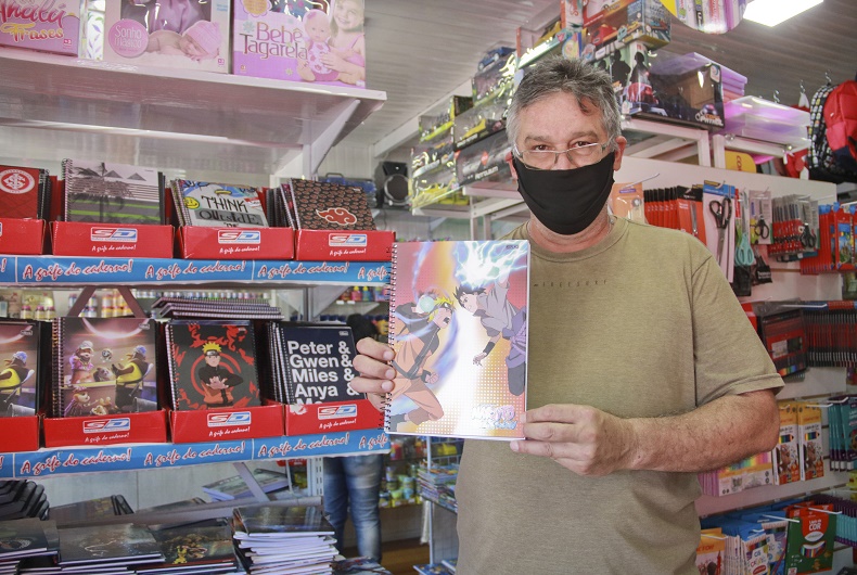 “Para nós, foi uma surpresa grande esse movimento. É bom ver a felicidade das pessoas e que a criançada está com gás para voltar à aula” complementou Ritter. Lápis, borracha, canetinha, cola e tesoura estão entre os materiais mais solicitados nas listas – além, é claro, dos cadernos. Neste item, um modelo em específico é o carro-chefe nesse retorno às aulas. “A bola da vez é o caderno do anime do Naruto. É o sucesso desse ano. A fábrica não tem dado conta de entregar tanta demanda. Também vendemos bastante os livrinhos ilustrados para os menores”, relata o empresário.