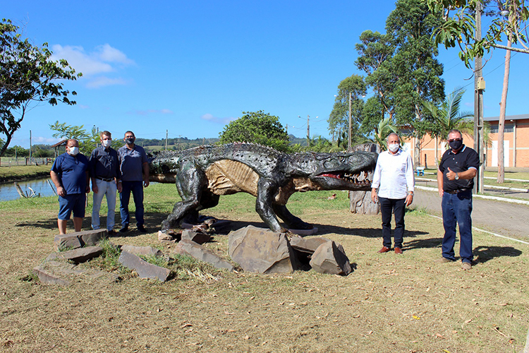O animal tem 1,5 metro de altura e 7 metros de comprimento. As medidas seguem as dimensões originais do predador, baseadas em estudos científicos. O secretário de Turismo explica que a exposição da escultura volta a ser uma atração no parque e mostra o potencial dos afloramentos de fósseis em Candelária.