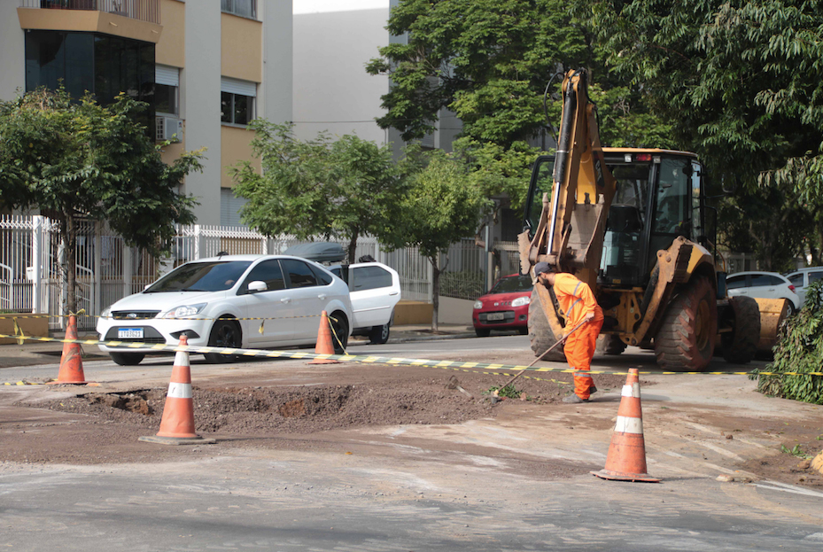 Também na Senador Pasqualini, a companhia atuou no conserto de uma rede nessa terça-feira. O pavimento, na esquina com a Rua Augusto Spengler, deve ser refeito nos próximos dias.