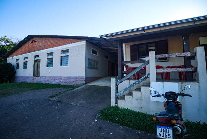 “Antes de se tornar Salão Wehner, aqui se chamava Stein. Os pais do Elias adquiriram a estrutura e tocaram os negócios. Mas há 14 anos somos eu e ele cuidando daqui, pois os pais do Elias resolveram ter mais tranquilidade, e nós continuamos os negócios, inclusive os bailes,” conta Aline.