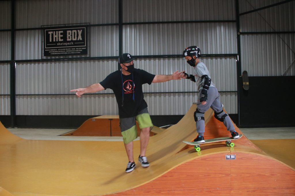 A The Box conta com uma mini ramp e uma pump track no espaço externo, uma pista democrática que também pode envolver treinos de ciclismo, por exemplo. Os equipamentos para a prática podem ser alugados no local. Os professores viajam frequentemente para aperfeiçoar as técnicas, principalmente em Florianópolis, considerada um dos centros de referência no mundo. “O skate é um esporte que envolve todos. Não tem idade. São vários benefícios para a saúde, como o desenvolvimento motor, equilíbrio, propriocepção, fortalecimento muscular e fortalecimento cardiorrespiratório”, explica o professor Carlos Hoehr, parceiro no projeto de iniciação e aperfeiçoamento no skate.