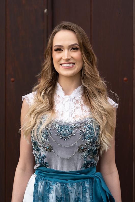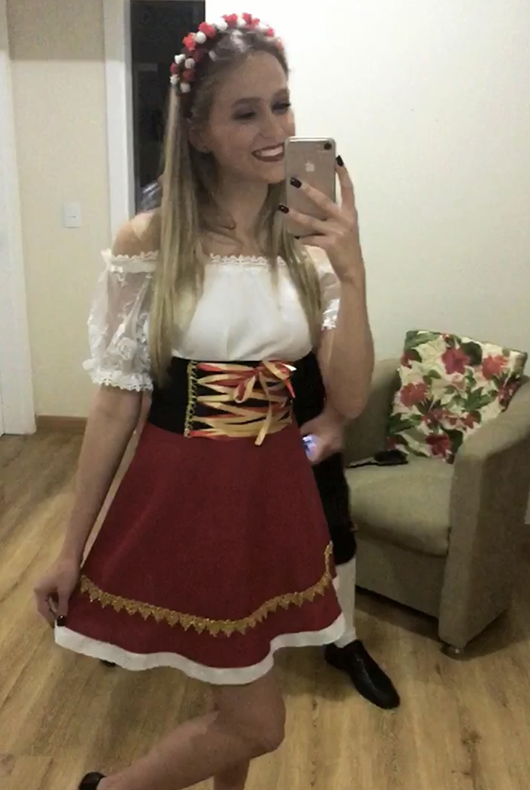 Antes da mudança para Santa Cruz, Thaissy já conhecia a Oktoberfest. Entretanto, foi morando na cidade que ela passou a viver mais intensamente a cultura local. Com os amigos, todos devidamente trajados, sempre frequentou a programação da festa e até participou de alguns desfiles no Centro. E justamente o “clima da Oktoberfest”, que ela considera de extrema magia, aguçou ainda mais o amor pela cidade que