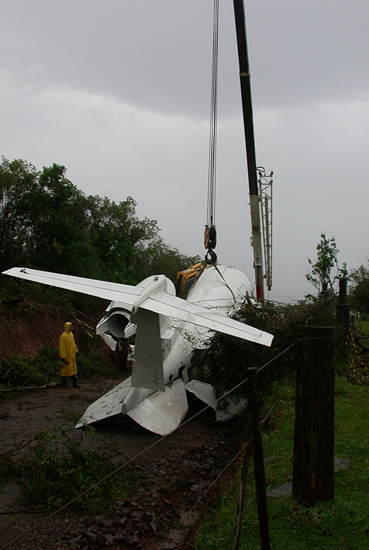 A área foi isolada e assim permaneceu até sexta-feira, quando os guinchos da Trevisan efetuaram a retirada dos destroços. O avião, com 17 metros de comprimento, precisou ser cortado em três pedaços. Como os tanques ainda armazenavam combustível, havia o risco de uma faísca provocar uma explosão. Daqui, as partes foram levadas a São Paulo, onde ficava a sede da seguradora.