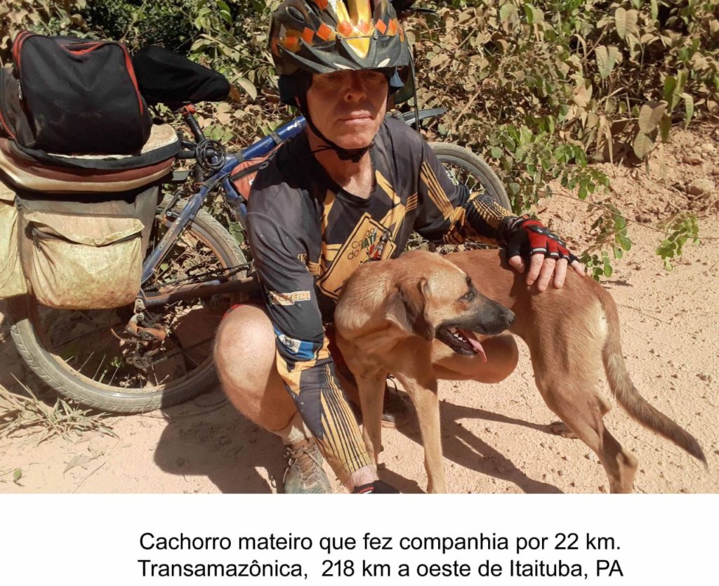O melhor amigo – No Pará, pernoitei numa fazenda que não produz nada. Seus ocupantes, todos homens, dedicam-se à extração de madeira. Café da manhã tomado, continuei a viagem. Uns 500 metros à frente escutei barulho de animal de porte no mato, ao lado da estrada. Fiquei apreensivo, pois quem anda na selva passa o tempo todo pensando em onças. De repente, o animal pulou na estrada: era um dos cachorros da fazenda que resolveu me acompanhar. Tentei, em várias ocasiões, fazê-lo voltar, sem sucesso. Cerca de 20 quilômetros adiante, parei no boteco da D. Maria, às margens do igarapé Jacaré II, para almoçar. E o cachorro, reconhecido pela proprietária, sempre junto. Ele me acompanhou por mais 2 quilômetros, quando entrou na selva e não o vi mais. Deve ter voltado à fazenda.