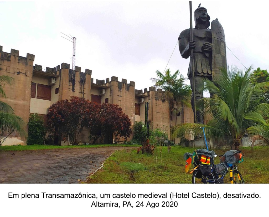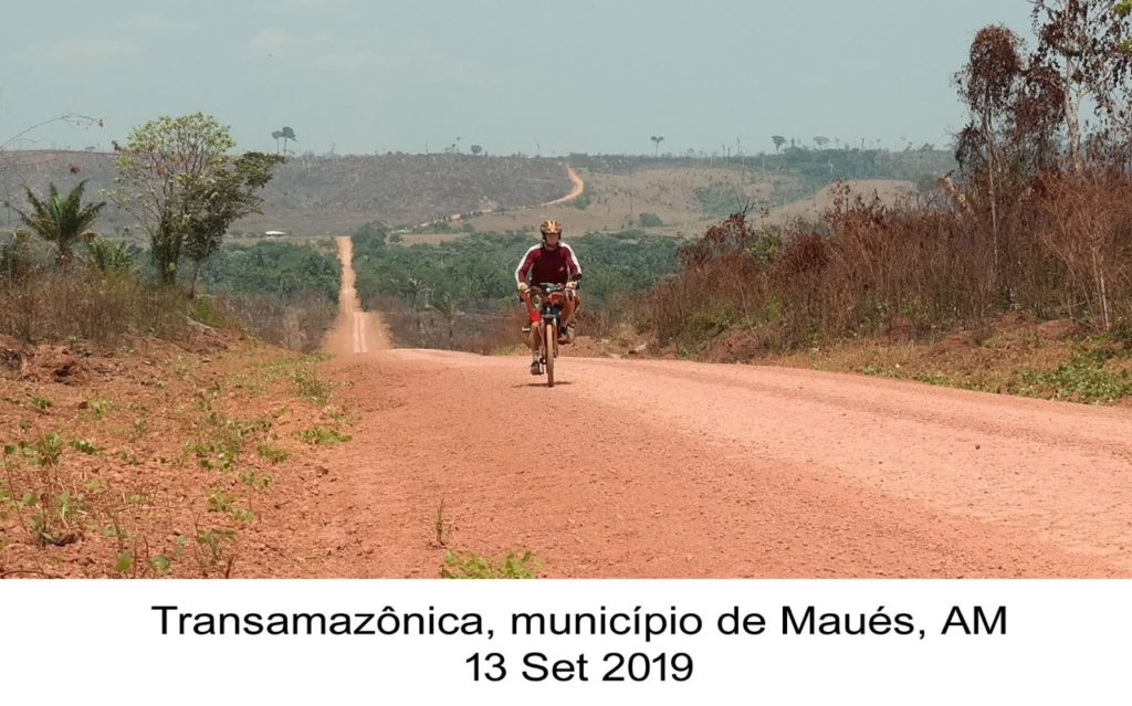 A bicicleta foi reequipada com novos alforjes, bagageiros e outros itens, desmontada e encaixotada para o voo Brasília/Santarém e para o trajeto de ônibus Santarém/Uruará (PA). No reinício da viagem ciclística, em 18 de agosto de 2020, tive a companhia do filho Douglas, que comprou em Uruará uma bicicleta para fazer o percurso de terra de 106 km até Medicilândia (PA). Daí para a frente, segui sozinho. Nessa fase, todos os pernoites foram em hotéis, pousadas ou dormitórios, ao contrário da anterior (2019), em que colchonete ou rede foram utilizados em postos de combustíveis, casas (habitadas ou abandonadas), reservas indígenas ou varandas de bares, restaurantes e comércios.