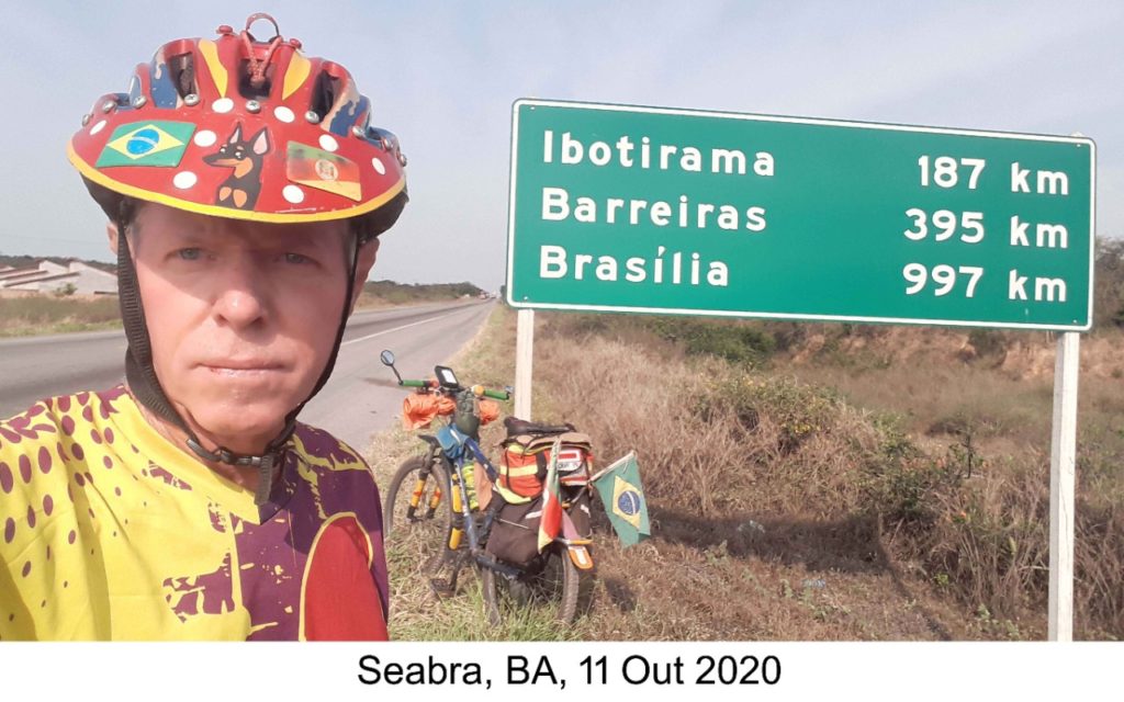 Terminada a etapa principal, restava o retorno para casa. Dois dias de descanso em João Pessoa, com apoio da sobrinha Márcia Barbosa, eis-me novamente na estrada, agora em percurso já conhecido de outras viagens de carro ou moto: Caruaru, Garanhuns, Tucano, Seabra, Ibotirama, Correntina, Posse, Formosa e Brasília, com chegada em 21 de outubro de 2020. Desde o início, no ano passado, foram percorridos 10.076 km em 118 dias efetivamente pedalados e 28 pneus furados. Durante todos esses meses na estrada, a alimentação foi somente aquela encontrada no trecho. Nada de suplementos, energéticos ou outras porcarias artificiais.