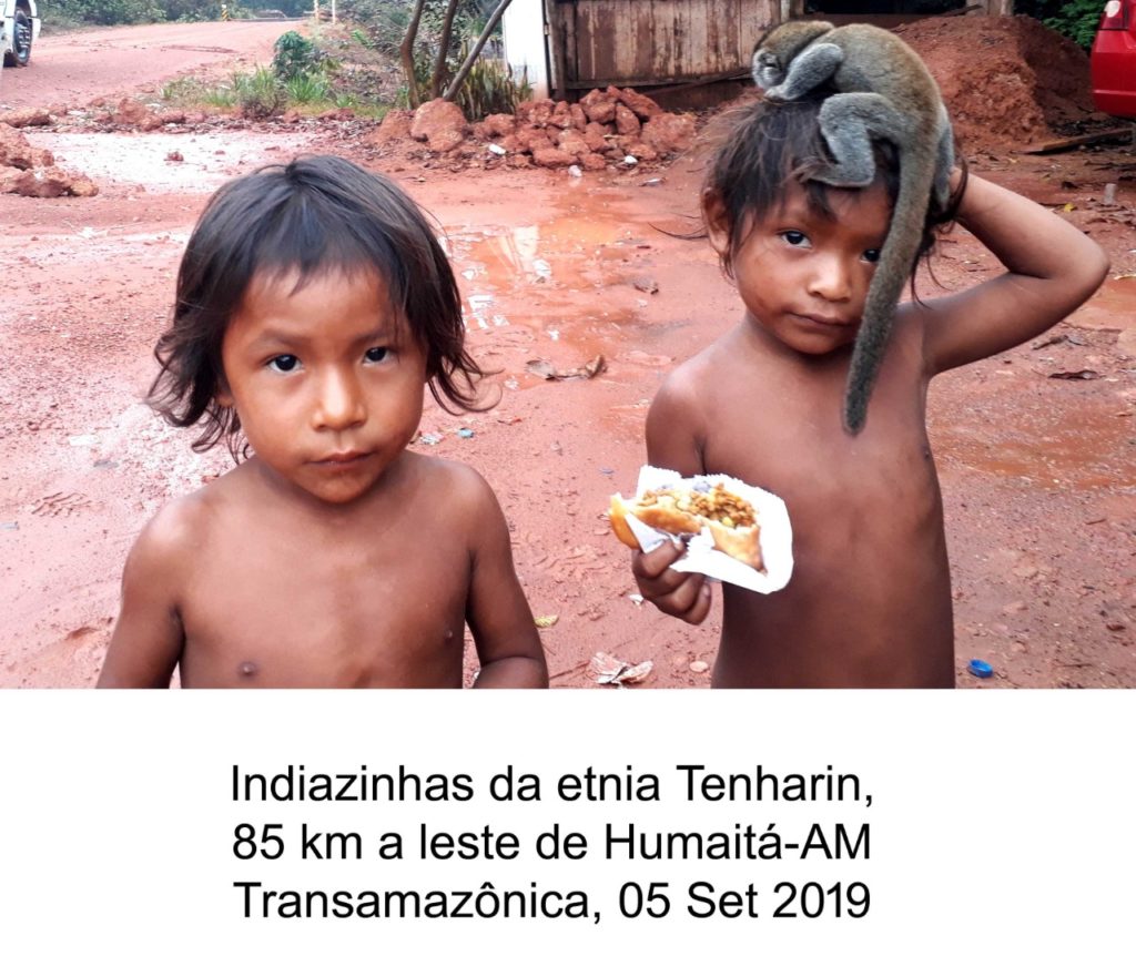 Índios – A Transamazônica atravessa a reserva indígena da etnia Tenharim, num trecho de 58 quilômetros, a meio caminho entre Humaitá e Apuí (AM). Esses índios frequentaram muito os noticiários anos atrás, devido a um ilegal e extorsivo pedágio montado por eles. Em 2013, assassinaram três pessoas inocentes, um vendedor, um professor e um funcionário da Eletrobras, acusados de terem atropelado um índio encontrado morto na estrada. Num ritual místico de pajelança, um pajé teve a “visão” de que um carro preto fora o causador do atropelamento. Para azar dos três, o veículo deles, o primeiro a passar pela aldeia após a pajelança, era preto. O comentário geral, no entanto, é de que o índio, bêbado, caiu da motocicleta que pilotava. Houve revolta da população, casas e prédios de apoio a indígenas foram incendiados e o governo federal teve que intervir. O pedágio foi suspenso. Durante a travessia pela reserva, não tive problemas.