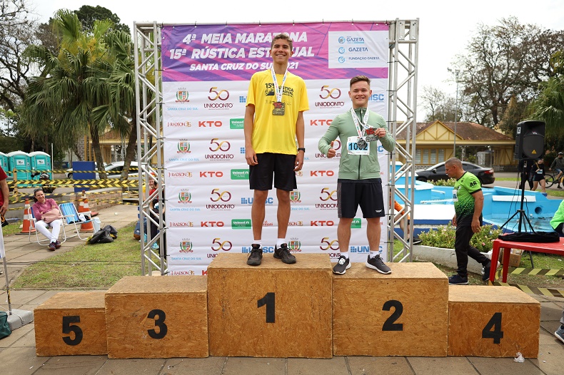 Atletas de todas as idades participaram, na manhã deste domingo, 25, da 15ª Rústica Estadual e da 4ª Meia Maratona de Santa Cruz do Sul. Com diferentes percursos e distância, cada atleta superou os próprios limites para participar das competições, que tiveram concentração e largada em frente ao Parque da Oktoberfest. Confira, abaixo, as fotos de cada pódio dos eventos.