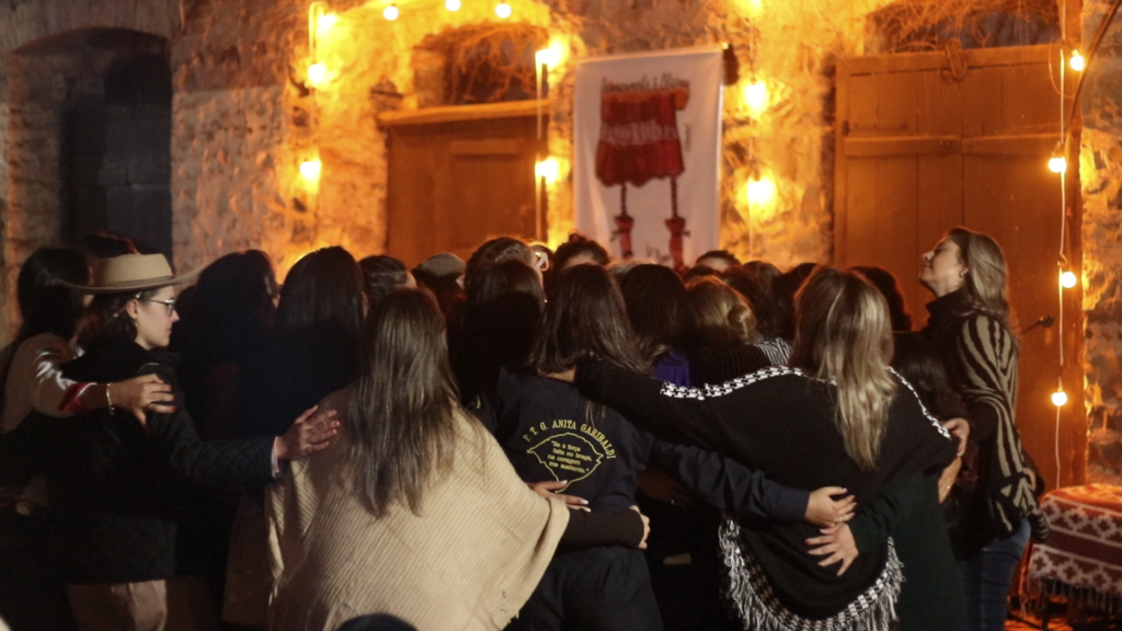 Sinopse: o documentário acompanha três dias de encontro de 46 mulheres reunidas em uma fazenda para exercitar a arte da composição regional.