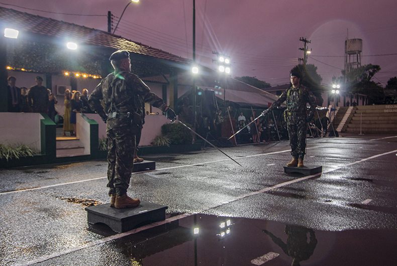 Tradicionalmente, a solenidade de boas-vindas aos novos comandantes ocorre pela manhã, mas em virtude do calor, o 7º BIB optou pelo ato à noite.