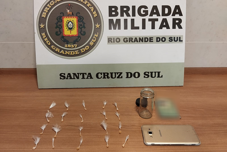 Naquele momento, os policiais realizaram a abordagem dos indivíduos. Com o rapaz de 29 anos, foi apreendida a porção de crack que ele havia adquirido. Já com um dos traficantes, a BM apreendeu o documento do comprador. No terreno baldio, ainda foram encontradas as demais porções de crack em um pote. Ainda, foram recolhidos um celular Samsung, os cartões do comprador e R$ 1,05 em moedas.