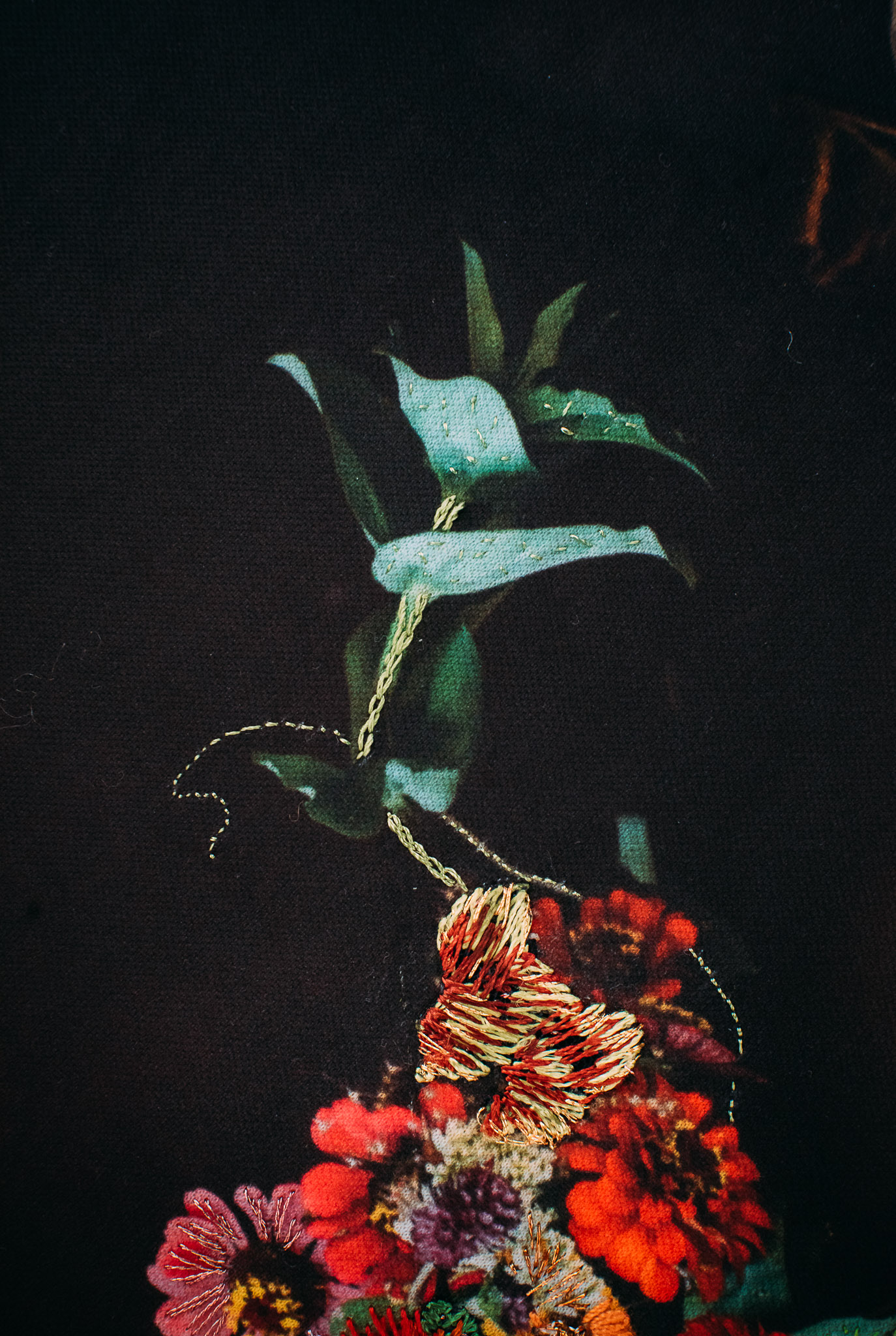 Após ser provocada pelo que parecia ser uma trama de fios, fui instigada a pensar de que modo poderia provocar um movimento de demorar-se o olhar no momento de contemplar a criação, e do meu próprio fazer. Foi a partir disso que cheguei à ideia de bordar sobre as fotografias.