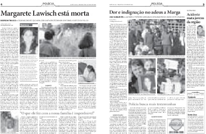 Citado por Lisandra como uma das investigações mais desafiadoras de sua carreira, o fato iniciou-se com o desaparecimento da assistente social Margarete Inês Lawisch, de 28 anos, em 1º de abril de 2009. O corpo foi encontrado apenas em 19 de abril, jogado em uma área de mata próximo ao Bairro Várzea, à margem da BR-471. Já estava em estado de decomposição.
