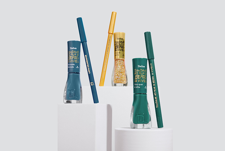 No clima da Copa do Mundo, a Dailus lançou a coleção Saudade do que a gente já viveu: um trio de esmaltes e um trio de lápis delineadores, inspirados na bandeira do Brasil.