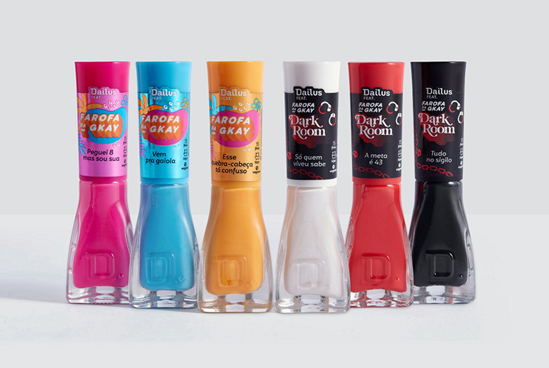 Outra linha, que já vem em sua segunda edição, é a Dailus Feat Farofa da Gkay. São seis cores inéditas divididas em dois trios: Farofa da Gkay, com cores que exalam alegria e alto-astral, e Dark Room, representado por tons clássicos e marcantes.