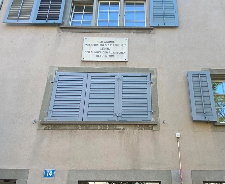 Meu destino seguinte foi o número 14 da estreita viela Spiegelgasse. Naquele endereço, em um diminuto apartamento cuja cozinha era dividida com mais quatro famílias, morou o casal Vladimir Ulyanov e Nadejda Krupskaya. A mente revolucionária do russo que entraria para história como Vladimir Lenin foi influenciada pelo ambiente dos sindicatos ou guildas (Zünfte) de Zurique, tradicionais e fortes desde o século 14 até os dias de hoje. Lenin discursava para os trabalhadores suíços, na sua grande maioria famintos e vivendo em péssimas condições. Na cidade, ele escreveu a obra “Imperialismo, o mais alto estágio do capitalismo”.