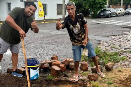 Conserto foi realizado pelo Professor Cleber e voluntário após pedidos à Secretaria de Obras e buscou reduzir risco de acidentes