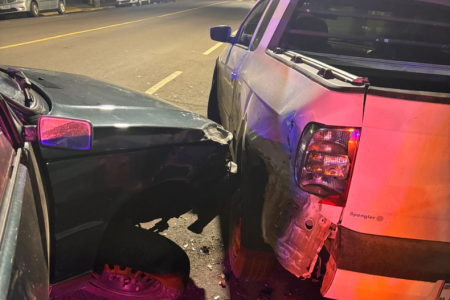 Acidente na Rua Marechal Deodoro envolveu um Chevrolet Onix, um Volkswagen Fox e um Fiat Idea que estava estacionado