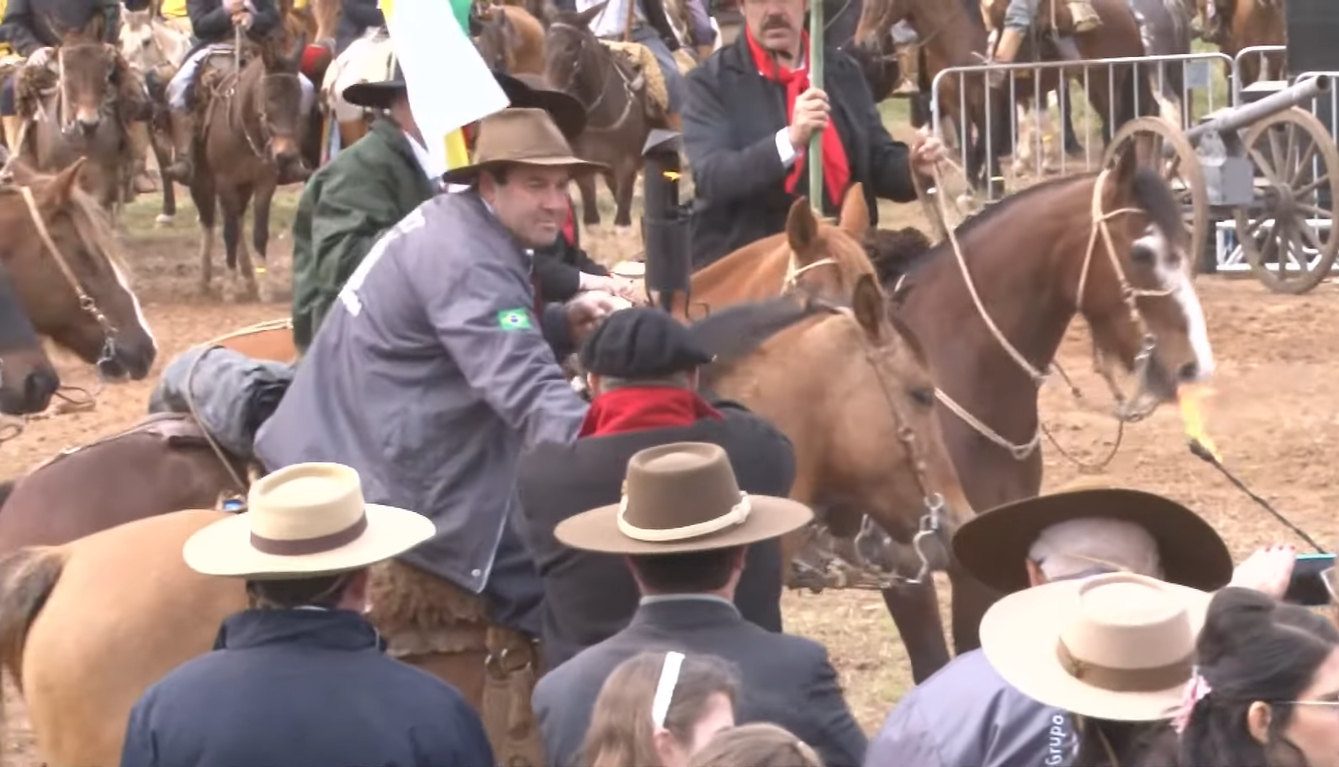 Com os Festejos Farroupilhas 2024 oficialmente abertos na semana passada, na capital gaúcha, tendo como tema o Centenário de Jayme Caetano Braun e como patrono o músico Pedro Ortaça, foi promovido nesta sexta-feira (16) e sábado (17) o evento da 75ª Geração e Distribuição da Chama Crioula do Rio Grande do Sul, em Alegrete. O fogo símbolo gaúcho foi aceso com a participação de representantes do Brasil, Argentina e Uruguai, reforçando o tema da cerimônia neste ano: “Pampa Uma Pátria Sem Fronteiras”.