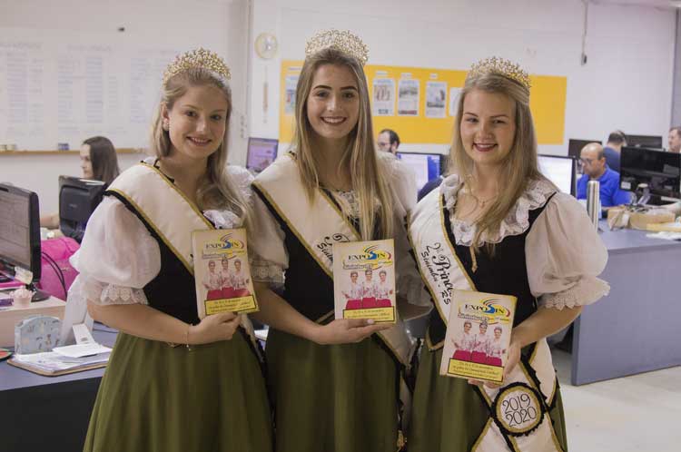 A recepção no Palácio Piratini ocorreu no período da tarde, no salão Negrinho do Pastoreio, junto com comitivas de outros municípios. Na oportunidade, o grupo oficializou a entrega do convite para a abertura da Exposin, no dia 14 de novembro, às 19h30. Na tarde dessa sexta-feira, o trio de soberanas visitou a Gazeta Grupo de Comunicações para a divulgação da festa.