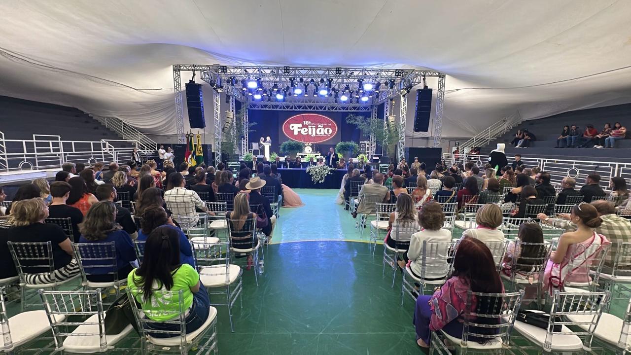 A 18ª Festa Estadual do Feijão teve sua solenidade de abertura realizada na noite desta terça-feira, 2 de abril, no Ginásio Antônio Dors, no Parque Marci Luiz Nardi em Sobradinho, na região Centro Serra. Em 2024 completam-se 40 anos da primeira edição do evento.