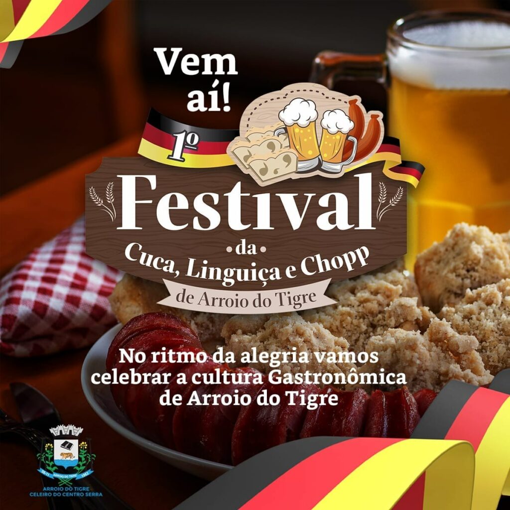 Ao completar 59 anos de emancipação político-administrativa de Arroio do Tigre, um novo evento na área gastronômica convida a comunidade regional para prestigiar a produção do município. Inicia hoje, 18 de novembro, a primeira edição do Festival da Cuca, Linguiça e Chopp, na Praça Deputado Ivo Mainardi.