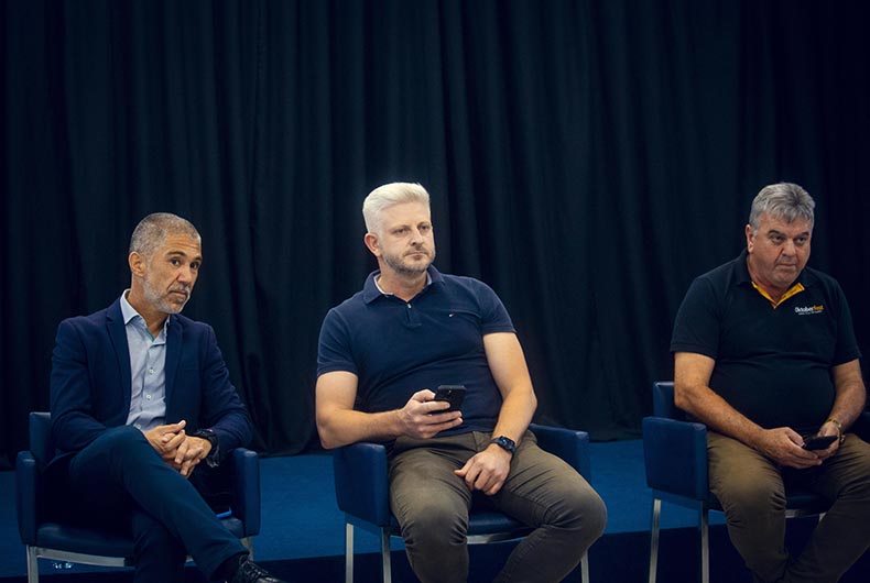 Luciano Menezes, Ricardo Bartz e João Goerck durante a coletiva dessa quarta | Foto: Albus Produtora