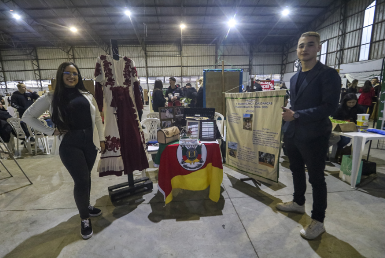 Quem participou da 6ª Mostra Regional de Projetos possivelmente notou um vestido de prenda em tons de vermelho e branco que estava exposto aos visitantes. O traje pertencia ao trabalho de Milena Marques e Eduardo Figueiredo, estudantes do 2º ano da Escola Estadual de Ensino Médio João Habekost, que fica no interior de Rio Pardo. Com muito amor pelas tradições gaúchas, os alunos apresentaram o projeto A significância das danças tradicionais na vida dos jovens.