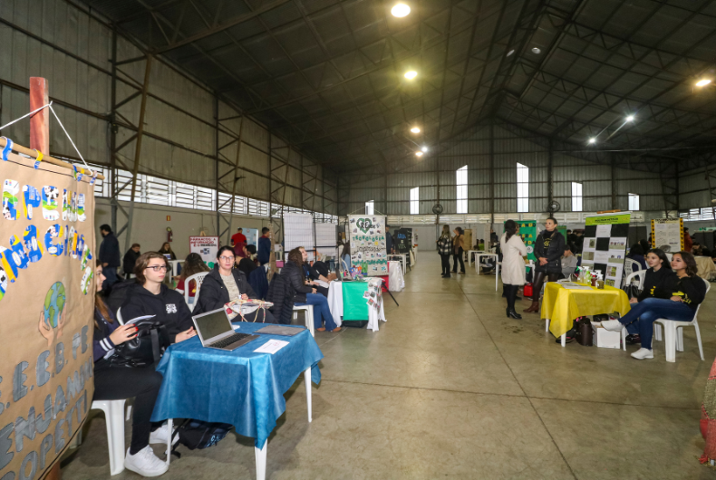 Mesmo com a chuva volumosa registrada nessa quarta, o Pavilhão 2 do Parque da Oktoberfest esteve lotado de visitantes que foram conferir a 6ª Mostra Regional de Projetos. Cerca de 400 pessoas participaram do evento, que reuniu representantes de 50 escolas dos 18 municípios da 6ª Coordenadoria Regional de Educação (6ª CRE). O tema que norteou as apresentações dos 96 trabalhos foi Sustentabilidade e tecnologia para transformar.