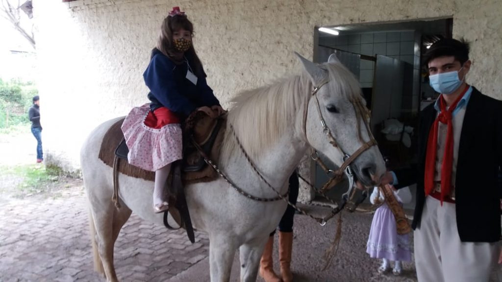 Celine saiu de casa com vestido de prenda, dizendo para a avó, Neusa, 71 anos, de que nesta sexta-feira, 17, teria um dia diferente. Contou que iria até o CTG Estância Alegre, lá na BR 471, de Santa Cruz do Sul, e que os demais colegas da Escola Municipal Duque de Caxias também passariam o dia por lá. “Não se preocupa, vó, eu vou de máscara e não vai ter atividade de grupo”, tranquilizou a menina. Disse ainda que no local haveria algumas atividades campeiras e que talvez até aprenderia a preparar um chimarrão. No final da manhã, para espanto de dona Neusa, ela recebeu uma foto da neta montada em um cavalo. “Meu Deus, ela nunca chegou nem perto de um a vida toda”, contou com euforia a mãe, Alessandra, que logo compartilhou a imagem no grupo da família Souza.