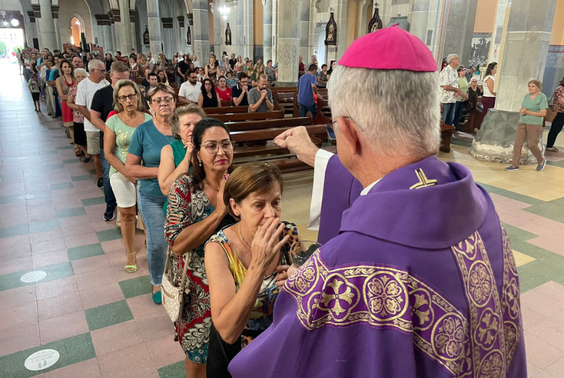 Vós sois todos irmãos e irmãs (Mateus 23,8). Esse é o lema da Campanha da Fraternidade 2024. A iniciativa foi lançada nessa Quarta-feira de Cinzas, 14, na abertura da Quaresma na Catedral São João Batista. Para a celebração, o bispo da Diocese de Santa Cruz, dom Aloísio Alberto Dilli, realizou a imposição das cinzas, com o auxílio do vigário-geral, padre Leandro José Lopes. No rito, cada fiel a recebe em sua testa, demonstrando a vontade em se manter no caminho do cristianismo. Marcava-se, assim, o início dos 40 dias que antecedem a Páscoa.