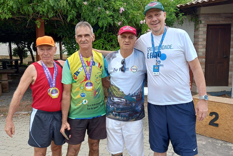 Os rio-pardenses Pedro Ramos, Heider Rosado e o professor Telmo Soares e Alexandre Cruxen, na primeira etapa do Estação Verão 2024, na AABB Santa Cruz do Sul