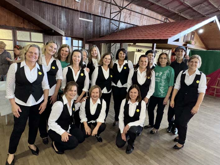 Em comemoração aos 200 anos da Imigração Alemã no Brasil, o grupo Elas Violão EnCanto realizou um concorrido chá na tarde do sábado, na Comunidade Evangélica de Sinimbu. E lá estiveram o coral Amigas do Canto, o Edelweiss e o Dançar é Vida. Alice Dofey destaca também a encenação da imigração alemã, feita por integrantes do grupo Elas e do Cras, de Sinimbu.