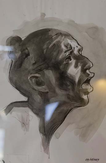 Uma sequência de desenhos de autoria de Hugo Braz que integram a mostra no Centro de Cultura Jornalista Francisco José Frantz: