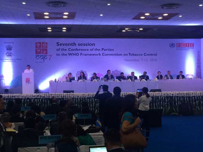 Além das lideranças governamentais, apenas organizações não governamentais (ONGs) da área da saúde e outras entidades públicas são admitidas nos debates. Mas lideranças da região identificada com a produção e o comércio de tabaco no sul do Brasil, bem como de outros países, costumam se deslocar para o ambiente de realização das COP a fim de acompanhar de perto os posicionamentos de seus governos. Por isso, também representantes da cadeia produtiva do tabaco do Vale do Rio Pardo haviam se deslocado até a Índia.