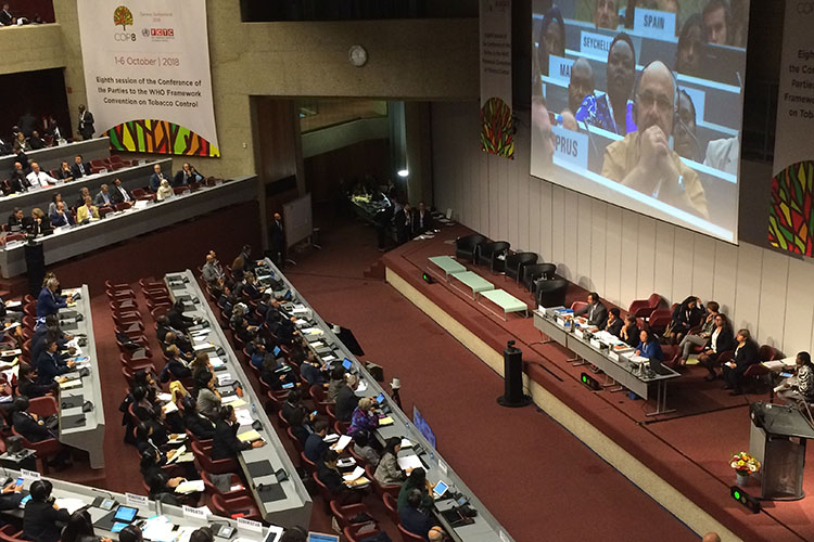 As discussões promovidas pela Organização Mundial da Saúde (OMS) no âmbito da Convenção-Quadro para Controle do Tabaco (CQCT) tiveram continuação em 2018. Naquele ano, foi realizada a 8ª Conferência das Partes (COP 8) do tratado internacional que estuda medidas de prevenção e inibição aos malefícios do hábito de fumar. Os debates aconteceram entre os dias 1º e 6 de outubro, em Genebra, na Suíça, cidade na qual fica a sede mundial da OMS.