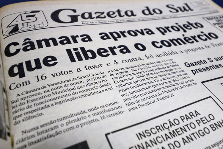 Já o segundo artigo estabelecia que a nova regra passaria a valer tão logo a lei fosse sancionada: “Esta lei entrará em vigor na data de sua publicação, revogadas as disposições em contrário.” A alteração na legislação santa-cruzense acompanhava um movimento que ocorria em vários municípios naqueles dias e costumava colocar entidades empresariais e representações de trabalhadores do comércio em forte oposição. O resultado foi um grande e ruidoso ato no dia da votação para pressionar a maioria dos vereadores disposta a apoiar a medida – que, no entanto, não conseguiu evitar a aprovação com folga.