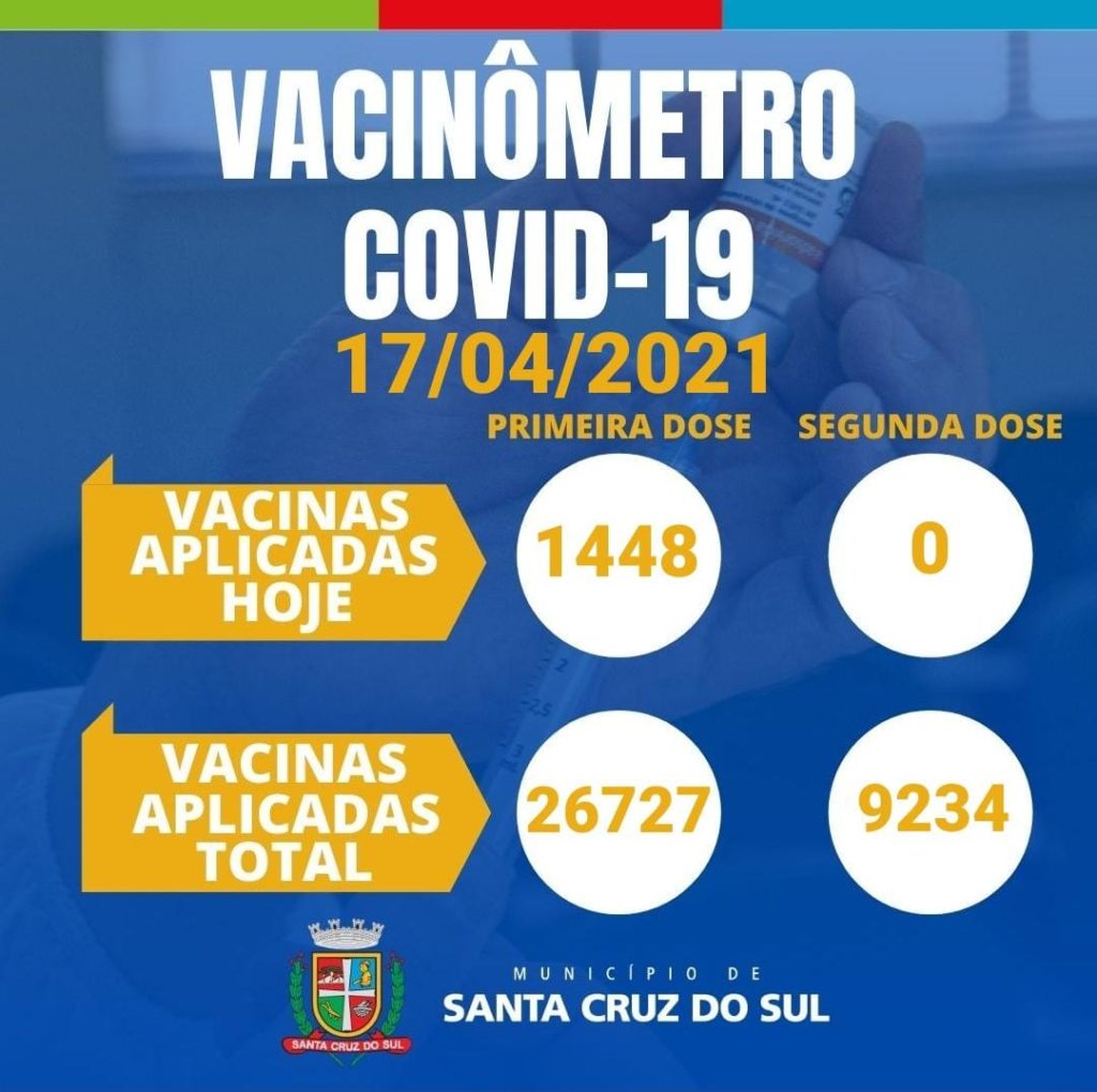 A Secretaria da Saúde de Santa Cruz do Sul informou neste sábado, 17, que irá ampliar a vacinação para idosos com 61 anos ou mais nesta segunda-feira, 19. A imunização irá ocorrer novamente no Parque da Oktoberfest, no sistema drive-thru nas Casinhas da Vila Típica e como pedestre no Pavilhão Central. Horário de atendimento será das 8 às 17 horas, sem fechar ao meio-dia.