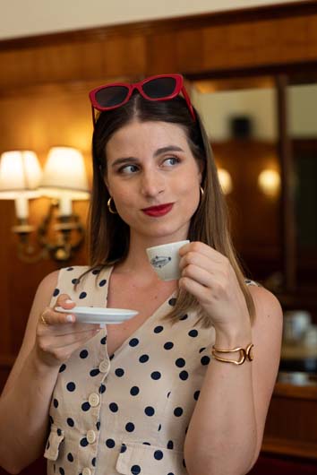 Na época, porém, essa novidade foi, ao mesmo tempo, um escândalo e um grande sucesso. Vale lembrar que Turim era a cidade da corte dos Savoia – uma sociedade elegante, cheia de rituais, códigos e regras. Ver as senhoras caminhando pelas ruas com um cone de gelato nas mãos era algo ousado, totalmente fora do que se esperava de uma dama refinada. Um verdadeiro escândalo! Nessas horas, eu penso: ainda bem que as mulheres conquistaram seus direitos – o voto, o trabalho, a liberdade de expressão e, sim, até a liberdade de comer um gelato em cone. Algo tão simples, mas que, no passado, não lhes era permitido socialmente. E, para piorar, além de ser considerado um gesto deselegante, havia o risco prático: o gelato derretia rápido no calor do verão e podia manchar os vestidos refinados das senhoras. Um desastre social – e fashion. Capaz até de arruinar a reputação de uma dama!