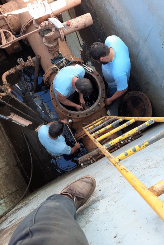 Durante o dia, além da limpeza já estabelecida no cronograma, as equipes realizaram outras manutenções, aproveitando que o abastecimento estava interrompido. “Aproveitamos a parada para fazer outras manutenções no sistema que eram necessárias e não podíamos realizar se o abastecimento não fosse interrompido”, comentou Barreto. “Instalamos dois registros de redes em adutoras de água tratada de 300 milímetros, realizamos um conserto na adutora de água bruta e também a manutenção de uma válvula retentora na mesma adutora, além da manutenção de um TAP (equipamento para medir a vazão de água tratada)”, detalhou.