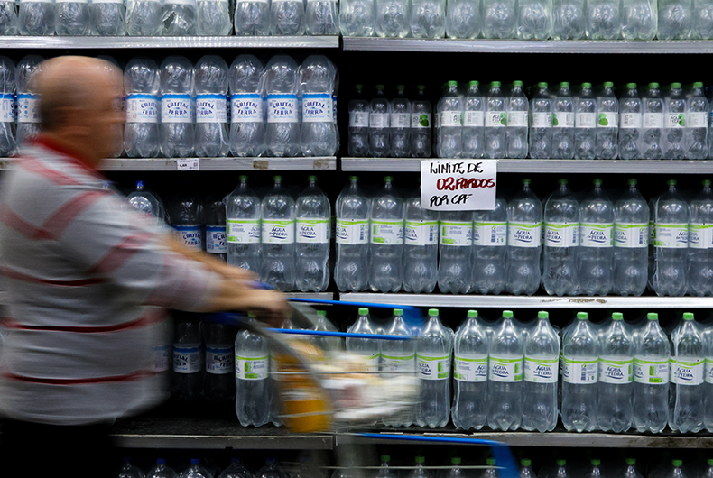 No caso da água mineral, a procura foi grande nos primeiros dias da calamidade climática. Santa Cruz conta com uma indústria do setor. Segundo o proprietário, há estoque de garrafas de dois litros e uma produção intensa de bombonas de cinco litros e galões de 20 litros. Ele afirma que já foi envasado 1 milhão de litros desde o início da calamidade. Uma parte da produção foi doada aos atingidos pela cheia. A empresa trabalha para atender à demanda regional, com 24 horas de produção. Algumas pessoas passaram a comprar água na própria fábrica. Os supermercados também recebem suprimento de outras marcas, o que aumenta a disponibilidade para os clientes.