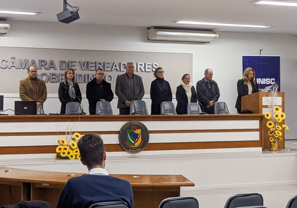 Nesta terça-feira, 19 de julho, ocorreu na Câmara de Vereadores de Sobradinho, a abertura oficial da Semana de Inovação e Cultura. O evento que teve início às 19h, contou com a apresentação do Projeto Esfera – “A consciência do descarte correto de medicamentos”, das alunas da Escola Estadual de Educação Básica Padre Benjamim Copetti: Giovana Xaviel Bassan, Juliana Librelotto Goettems, Kauana Antonio de Souza, Renata Kroth Furlan, Luana da Rocha Vanzing e a professora Jaciani Lucia Lazzarotto Pozzobon.