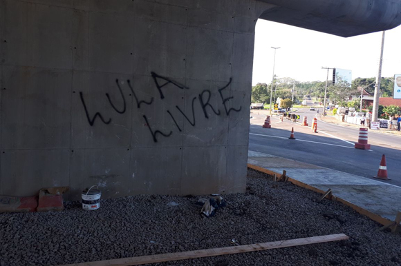 Mesmo antes de ser aberto, às 8h30 deste sábado, 28, o viaduto Fritz e Frida já estava pichado. As palavras “Lula livre” foram estampadas em uma parede da parte inferior da estrutura antes do amanhecer de hoje.