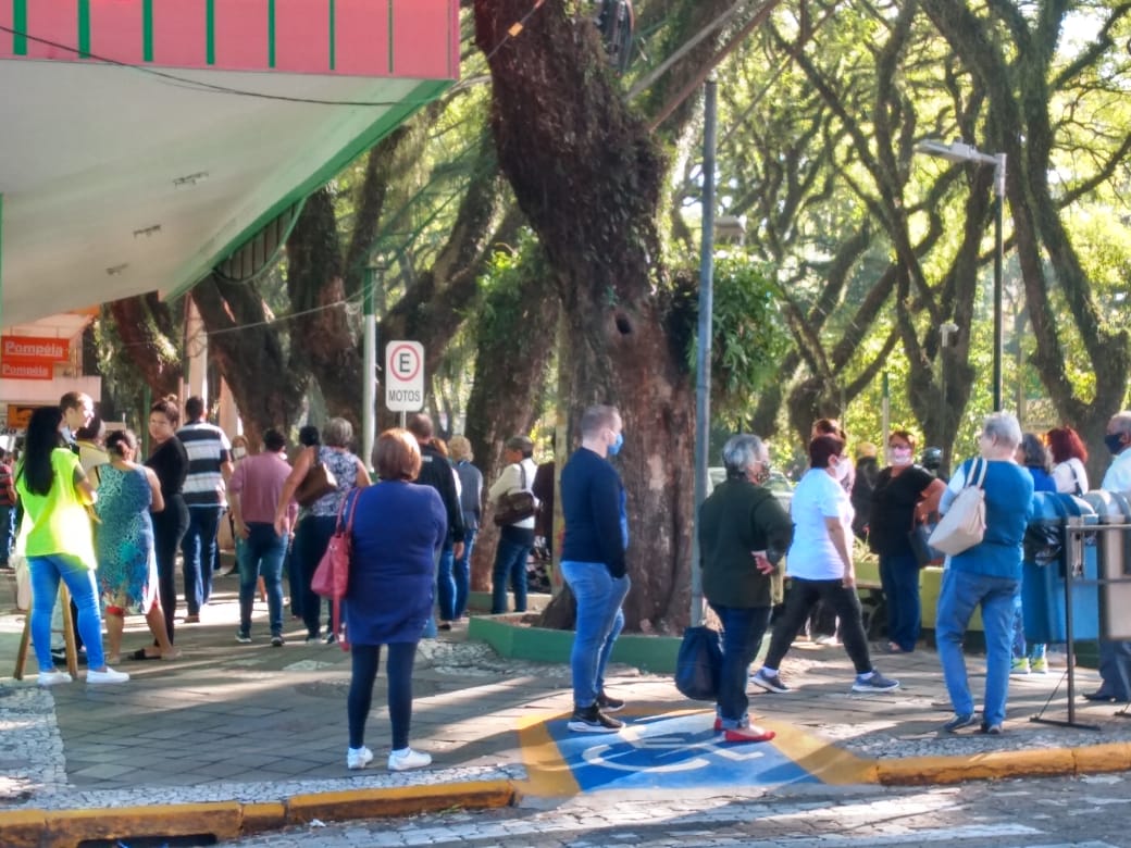 Outro ponto percebido pela reportagem é que a maioria das pessoas na fila é idosa. Segundo as orientações da Administração Municipal, os estabelecimentos podem funcionar das 8h30 às 17 horas, sendo que das 8h30 às 10 horas o atendimento será exclusivo para integrantes de grupos de risco.
