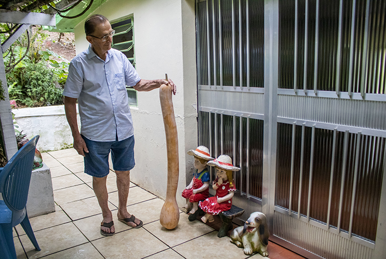 O que eles não imaginavam era que a plantação seria tão bem-sucedida a ponto de um dos legumes chegar a medir 1,20 metro. “Plantamos perto das árvores e ela foi subindo no pé de bergamota, começou a crescer lá no topo e com o peso ficou pendurada.”