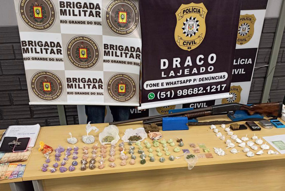 Uma operação conjunta da Brigada Militar e do Departamento de Repressão e Combate ao Crime Organizado (Draco) da Polícia Civil prendeu em flagrante dois homens – de 23 e 30 anos – pelos crimes de tráfico de drogas, associação para o tráfico e posse ilegal de arma de fogo. A ação ocorreu no Bairro Olarias, em Lajeado. O caso ganhou notoriedade após a circulação de um vídeo em que membros da facção passaram a atuar como milícia em bairros.
